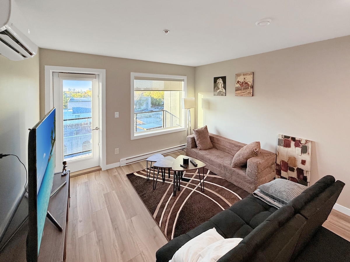Quedate en el centro de Winnipeg con estilo 🌆 🛏 2 camas queen cómodas para un sueño reparador 📺 Netflix • Prime • Disney+ en un televisor inteligente 💪 Acceso al gimnasio y al lounge en la azotea con vistas a la ciudad 🔥 Patio con parrilla para disfrutar de las noches ☕ Café, descafeinado, té y especias incluidos Estacionamiento 🚗 gratis y wifi rápido 🧴 Champú, acondicionador y gel 🍳 Cocina moderna completamente equipada con productos básicos 🎱 Mesa de billar, sillón cómodo y entretenimiento ✨ Todo lo que necesitás para estar cómodo, a gusto y divertirte en el corazón del centro de la ciudad.