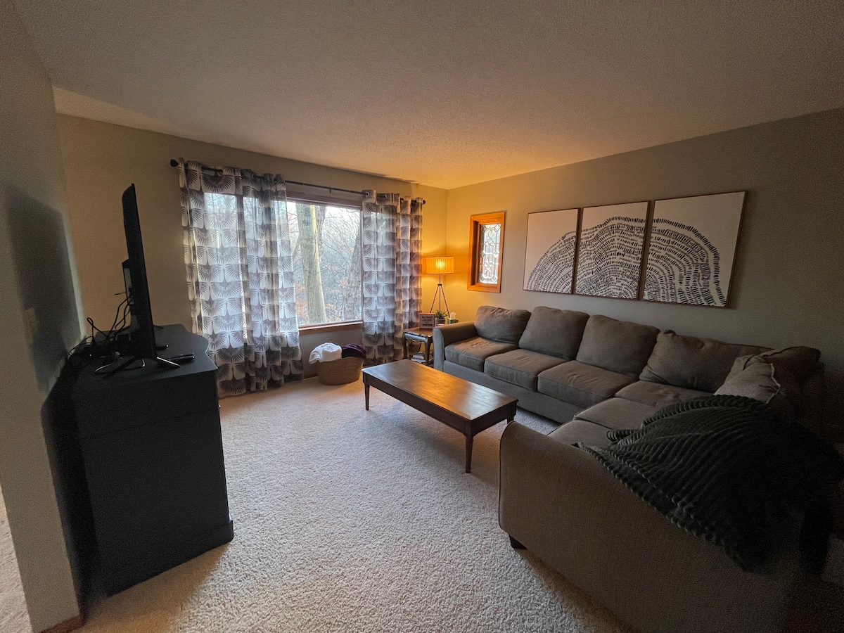 ¡NUEVO! ¡Dúplex de 2 dormitorios completamente renovado con una cocina completamente nueva! A poca distancia a pie de Bethany Lutheran College y Mayo Hospital Systems. A 5 minutos en coche de MSU-Mankato. Este espacio bellamente reformado y céntrico es perfecto para cualquier estancia. Internet de fibra súper rápido y lavadora y secadora incluidas.
