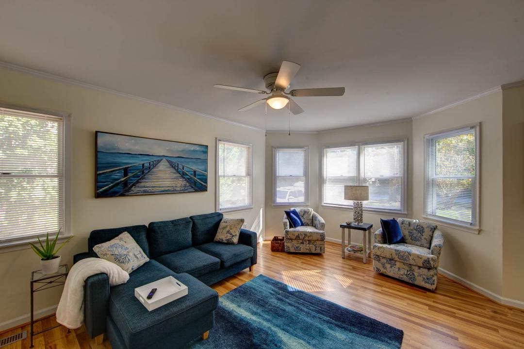 Ubicada en las dunas boscosas de la isla Roanoke, Crews Cottage está unida a la casa principal de los propietarios a través de un corredor y un porche protegido. ¡Sin escalones! (Consulta la sección Accesibilidad). Aproximadamente 1000 pies cuadrados de tamaño total, cuenta con un gran dormitorio privado (cama queen) con baño/ducha. La gran habitación tiene un sofá cama extraíble (completo) y un sofá cama de dos plazas (doble). La cocina pequeña cuenta con nevera de tamaño completo, horno microondas de convección, tostadora y cafetera. Lo sentimos, no se admiten mascotas.