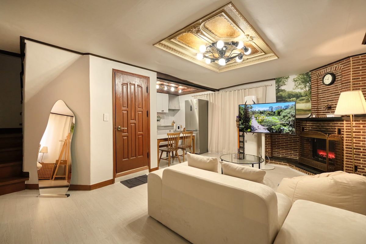 홍대입구역 도심에 위치한 정원과 바베큐 테라스가 있는 프리미엄 디자이너 하우스 CASA Living, MARU, SBS Morning Wide에 소개된 이 특별한 집은 이탈리아 디자인 스튜디오 Elastico의 디자이너 시모네 카레나 & 마르코 부르노가 한국 전통 한옥의 구조와 문화를 현대적으로 재해석하여 설계한 공간 담쟁이덩굴이 감싼 정원, 서울 한가운데서도 사계절의 자연을 느낄 수 있는 도심 속 힐링 공간을 경험 가능 벽난로가 있는 고급스러운 거실에서는 빔프로젝터로 영화를 감상할 수 있으며 침실에는 5성급 호텔 수준의 프리미엄 구스다운 침구(95% 이상) 완비 홍대의 감각적인 카페, 레스토랑, 갤러리와 가까우면서도 번잡함에서 살짝 벗어난 조용한 주택가에 위치한 프리미엄 숙소 12년 연속 슈퍼호스트가 운영하는 숙소로 청결, 관리, 서비스에 있어 최고의 만족도를 유지 4박 이상 예약 고객 무료 공항 픽업 서비스 제공 5박 이상 예약 고객 서울 프라이빗 투어 경험 무료 제공