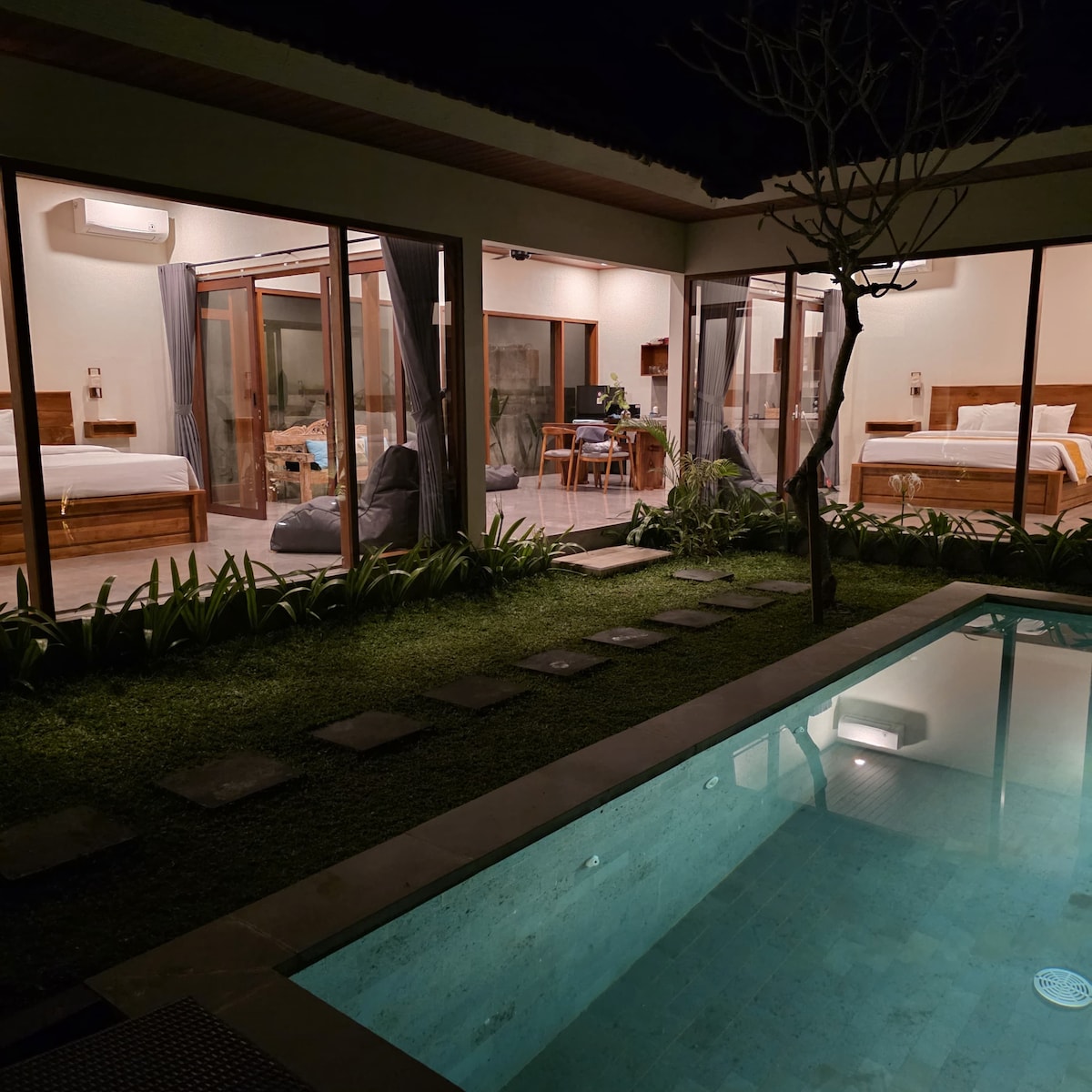 ¡Bienvenido a ArthaVana House, hospitalidad elegante en el corazón de la naturaleza, rodeado de belleza natural! El lugar perfecto para relajarse y disfrutar de un ambiente tranquilo lejos del bullicio de la ciudad. Con un diseño cómodo e instalaciones modernas, esta villa es perfecta para unas vacaciones o simplemente un breve descanso para ti y tu familia. Estamos listos para recibirte y garantizarte una experiencia de estancia inolvidable. • Con 2 dormitorios. • Bañera con agua fría y caliente. • Minicocina. • Sala de estar.