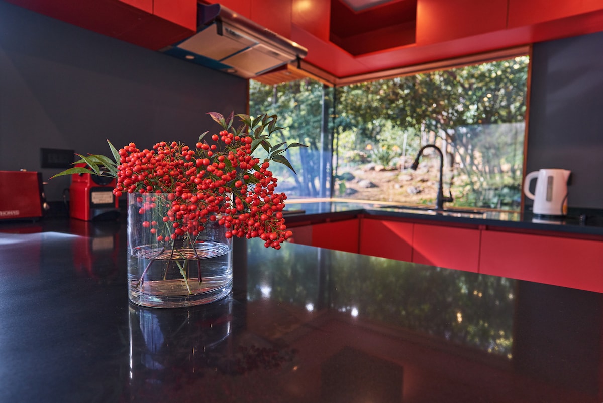 Inserta en el valle de El Maqui de la cordillera de la costa, en la tiny-home Los Boldos encontrarás un espacio exclusivo, en un entorno tranquilo y natural con vistas inolvidables al cerro la Campana. De inspiración japonesa y minimalista, la casa está construída en armonía con la naturaleza que la rodea, e incluye detalles únicos como lagunas con peces Koi traídos de Japón y pasarelas que rodean el bosque.