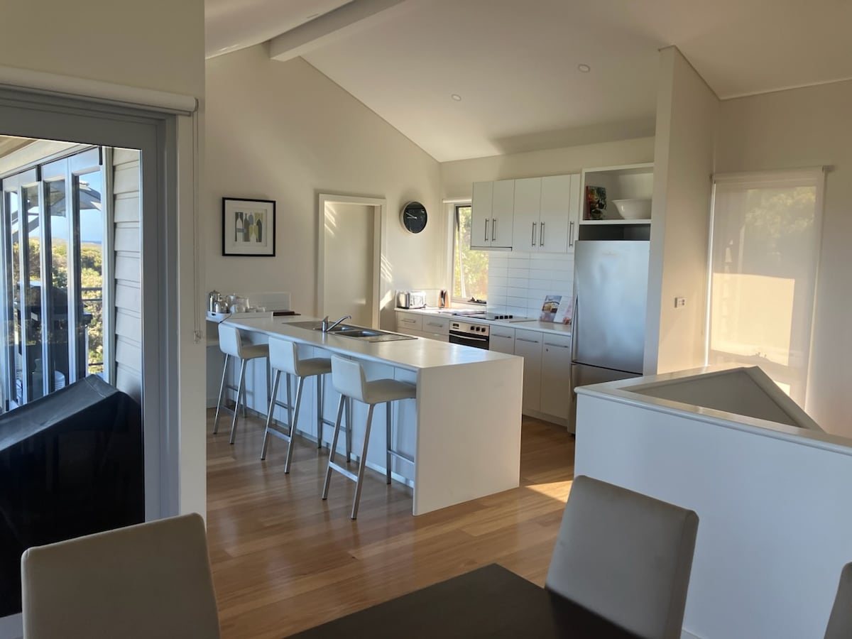 Relajante casa de playa con aire acondicionado y magníficas vistas panorámicas al mar desde uno de los puntos más altos de Gnarabup, Margaret River. Camina, ve en bicicleta o conduce hasta playas vírgenes para nadar o surfear y disfruta de un café en la cafetería de la playa. Y disfruta de vino y un almuerzo gourmet en famosas bodegas, o simplemente siéntate y contempla las mágicas puestas de sol en el balcón. ¡No querrás irte!