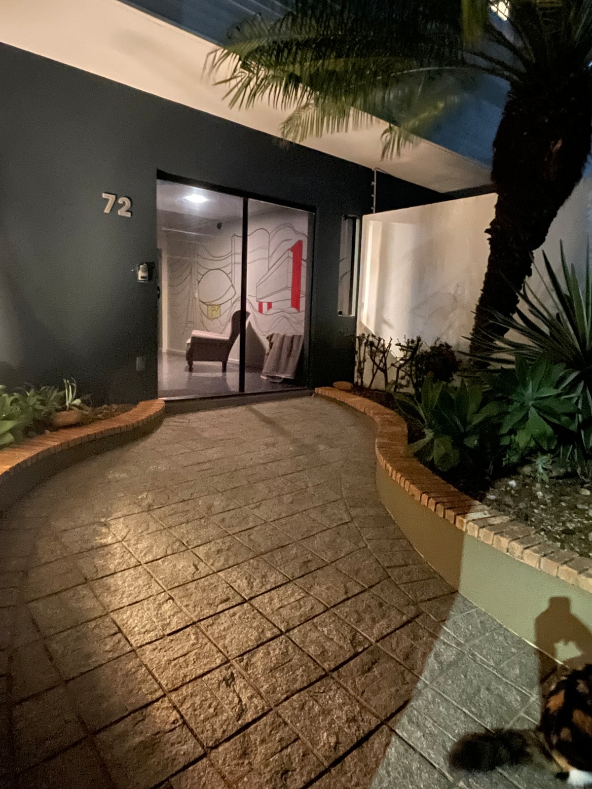 Espacio tranquilo y elegante a 900 metros del centro. Acceso (Recepción y circulación). El estudio ubicado en Pav. Baja con acceso por la escalera de 10 pasos. Contiene: sala de TV, despensa (minibar+microondas), baño y dormitorio con tabique privado de vidrio templado (ver fotos). Con patio trasero y spa en el área común al aire libre. Calle segura con vigilante nocturno para estacionar tu auto. Obs: No se permite la fiesta Trae tu traje de baño (toallas de cara y cuerpo) Tenemos una encantadora Pandora Gata en el recinto.