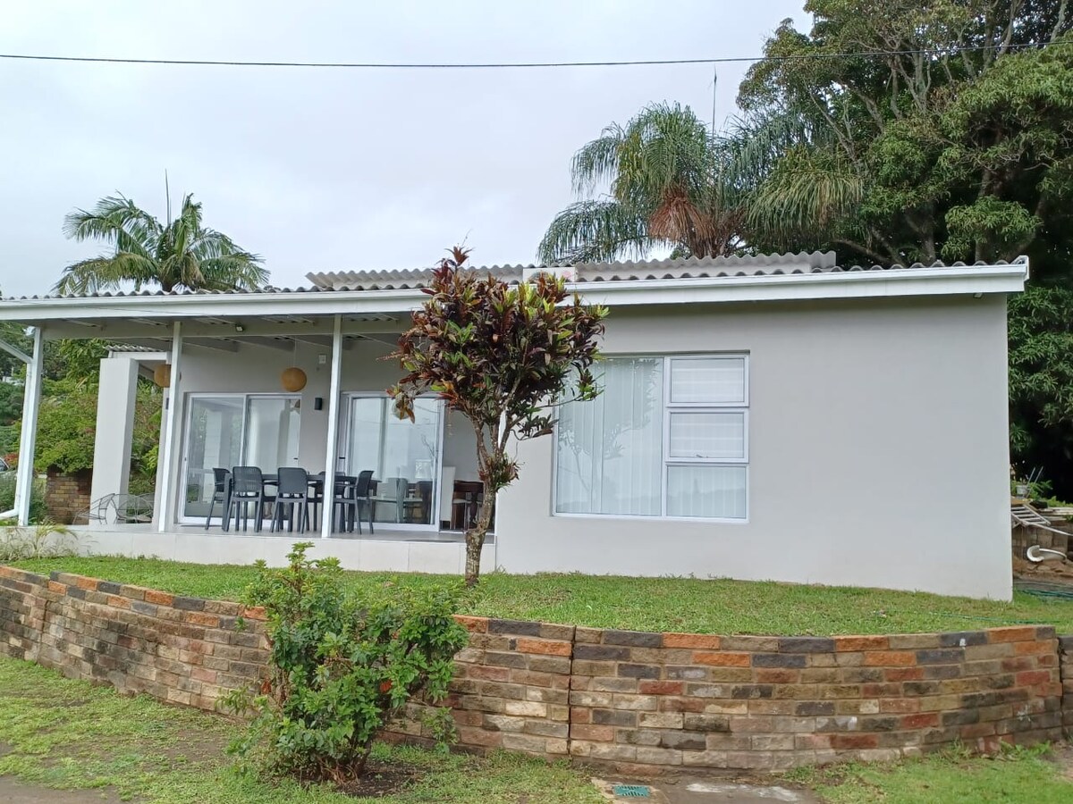 Esta villa bien situada está a poca distancia a pie de la playa, el hotel, la piscinay el campo de mashie. Construida justo en la presa, se puede disfrutar de tranquilos cafés por la mañana o barbacoas/atardeceres por la noche en el patio. Hay 3 dormitorios y 2 baños (1 en suite). Cocina totalmente equipada (que incluye lavavajillas, lavadora y secadora), comedor, salón y patio con barbacoa/tanque Braai incorporado. Se podría proporcionar un servicio de limpieza que sea necesario, EXCEPTO domingos o días festivos. Acomódate con el anfitrión.