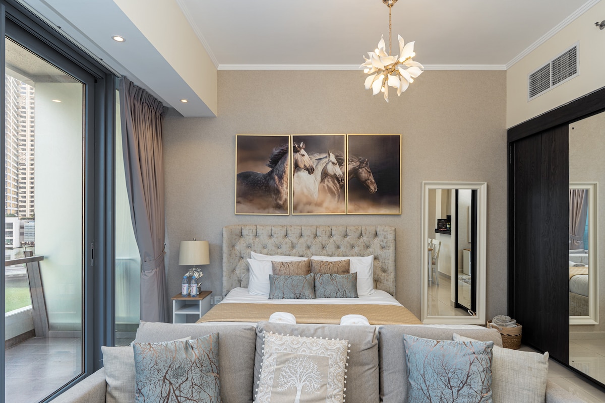 - Excelente ubicación en el puerto deportivo de Dubái, a solo unos pasos de la playa. - Amplio balcón con vistas panorámicas del horizonte de la ciudad. - Diseñado para el ocio y la comodidad del trabajo remoto - Interiores elegantes y wifi ultrarrápido - Zona de trabajo exclusiva con un escritorio y una silla cómodos - Smart TV para streaming y entretenimiento sin problemas
