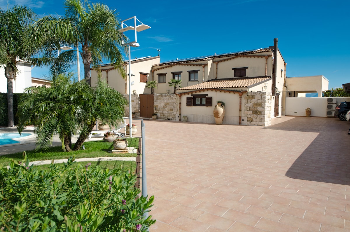 Villa independiente con pileta infinita y jacuzzi para uso exclusivo, ideal para hasta 6 personas. Cuenta con 2 dormitorios con baño privado, living doble con cocina y amplios espacios verdes para vivir momentos de relax y convivencia. A solo 200 metros de las Salinas de Genna y la laguna de Stagnone, donde se pueden admirar puestas de sol inolvidables, la villa también está a 10 minutos a pie del club de tenis y en una ubicación conveniente para explorar los alrededores.