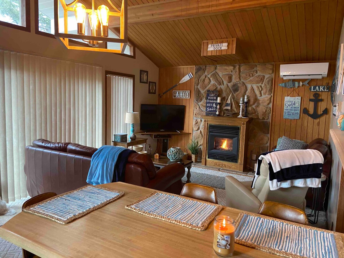 Relájate y desconecta en este alojamiento tranquilo y elegante. Chimenea interior, chimenea exterior (con mucha madera) y comedor al aire libre. La cocina está equipada con todo lo necesario (pequeños electrodomésticos, ollas y sartenes, utensilios, etc.). Mesa de comedor con juegos familiares. Justo enfrente del lago en la orilla sur. Ubicado a poca distancia a pie de restaurantes, tiendas, heladería, etc. Acceso al lago a media manzana para pesca en hielo y motos de nieve. No se admiten mascotas.