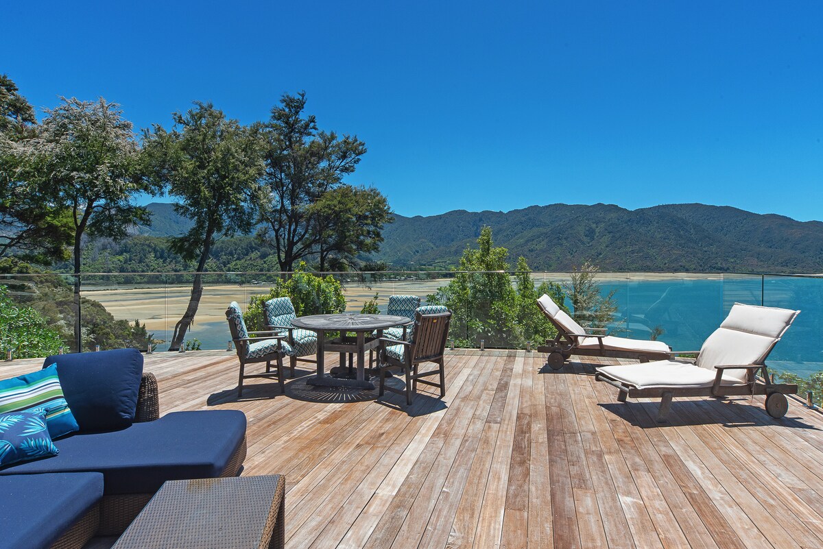 Descubre la verdadera felicidad en Tokongawa Retreat, una escapada exclusiva que ofrece paz, privacidad y vistas despejadas al mar a través de las arenas doradas de Marahau y la espectacular costa del Parque Nacional Abel Tasman. Esta lujosa casa de vacaciones se encuentra en un promontorio exclusivo, enclavada en medio de un velo del bosque de Kanuka y Manuka, que se abre espectacularmente a las amplias vistas azules a continuación.