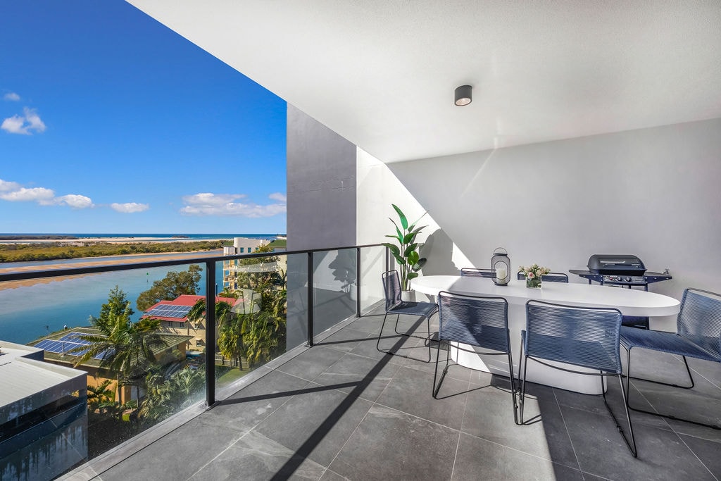 Sakara Haven – Coastal Comfort Meets Contemporary Style Welcome to Sakara, where beachside location meets modern elegance. This beautifully appointed brand new 2-bedroom, 2-bathroom apartment offers a relaxed coastal escape with a glimpse of the ocean and direct access to the pool, BBQ area, and gym – all on the same level. Just steps from the beach & an easy, flat walk to Sunshine Plaza, local cafés, restaurants & the Maroochydore CBD, you’ll have everything you need right at your doorstep.