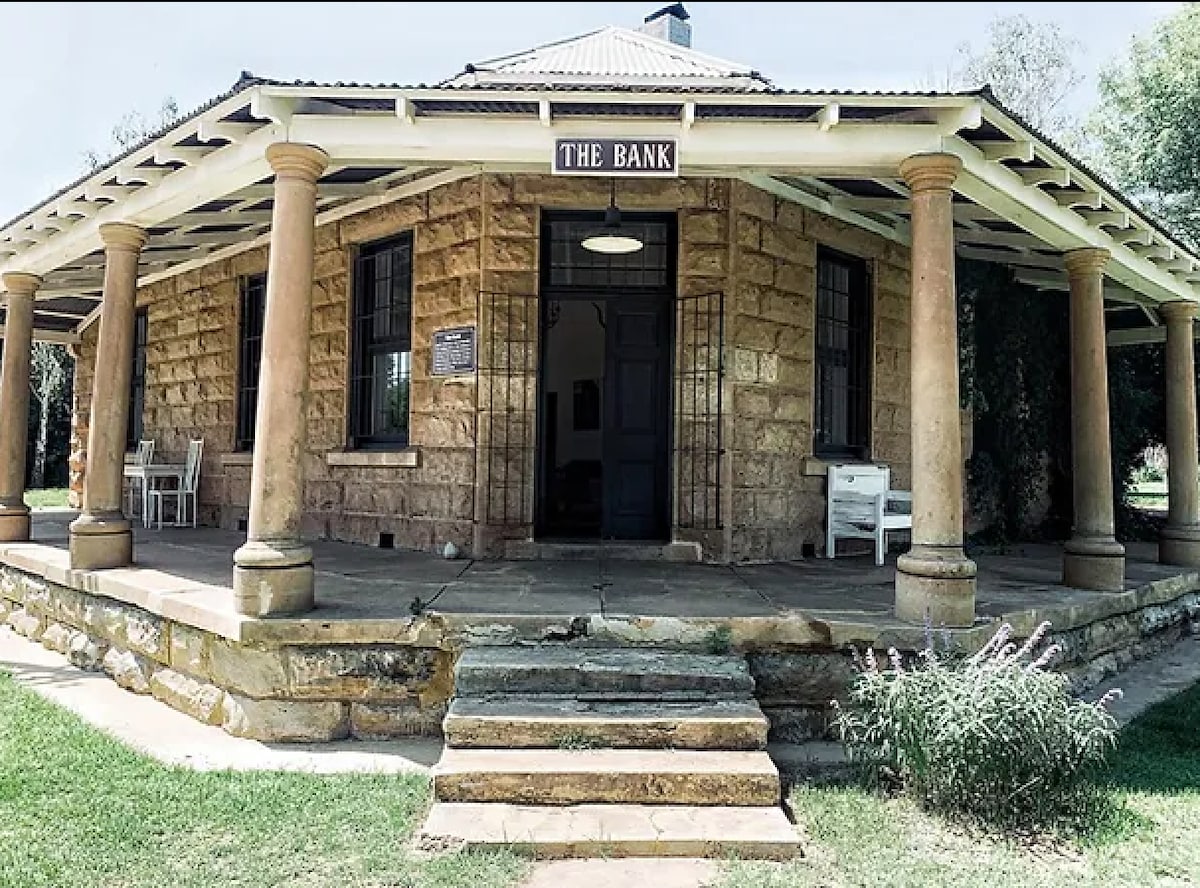 Ubicada en la tranquila campiña del Estado Libre Oriental, en Rosendal, esta encantadora casa de arenisca centenaria de 3 dormitorios ofrece un refugio sereno para un máximo de 8 personas. Su elegante fachada se mezcla armoniosamente con el entorno, lo que ofrece un ambiente pintoresco para una escapada relajante. Cada uno de los tres dormitorios es un santuario de comodidad y estilo, con ropa de cama de lujo, cómodas mantas eléctricas y su propio baño privado. El ambiente sereno garantiza una noche de sueño reparador.