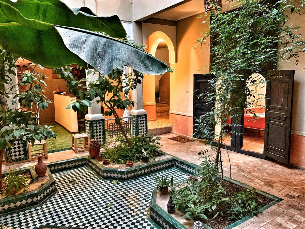 Salam aleikum, bienvenidos a “Maison Maroc - Riads, Boutique Hotel, Culture”. Sé con nuestros huéspedes, ¡te esperamos con ansias! Como anfitrión, estamos aquí para ti, te acercamos a la cultura y al país y te hacemos sentir como en casa. Esta elegante y acogedora suite con baño privado y aseo se encuentra en el hotel boutique Riad Almoulouk, en el centro de la medina/casco antiguo de Marrakech. El precio incluye desayuno marroquí y servicio diario.