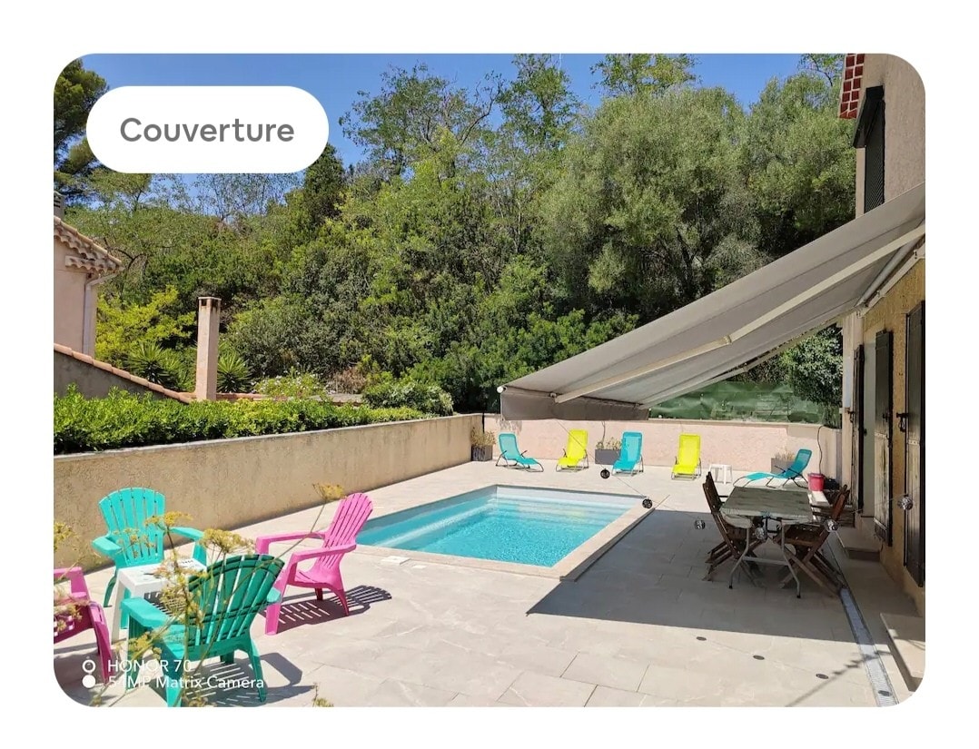 → Terraza con vistas panorámicas al mar → Renovado por un conocido arquitecto → Modernamente equipado : aire acondicionado en todas las habitaciones, cocina totalmente equipada → 4 dormitorios con camas tamaño queen (160 cm x 200 cm) y 4 baños → Sauna y spa → Ubicado a 10 minutos de las calanques. A → 3 minutos de los senderos de senderismo → Acceso directo a la playa → Sin vistas a los vecinos, muy tranquilo → Autobús a pocos pasos Estacionamiento → privado disponible junto a la casa