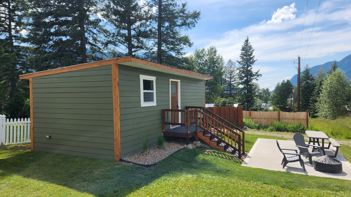 Your perfect getaway awaits at Glacier Contained. Experience a one-of-a-kind romantic hideaway, just a 20-minute drive from Glacier National Park and Whitefish, MT. This modern shipping container exudes charm and uniqueness. Share intimate meals in the outdoor dining and seating area, savor culinary delights from a spacious kitchen, and soak in a private hot tub beneath the stars. With breathtaking views and unique charm, this captivating retreat is a haven for lovers of beauty and adventure.