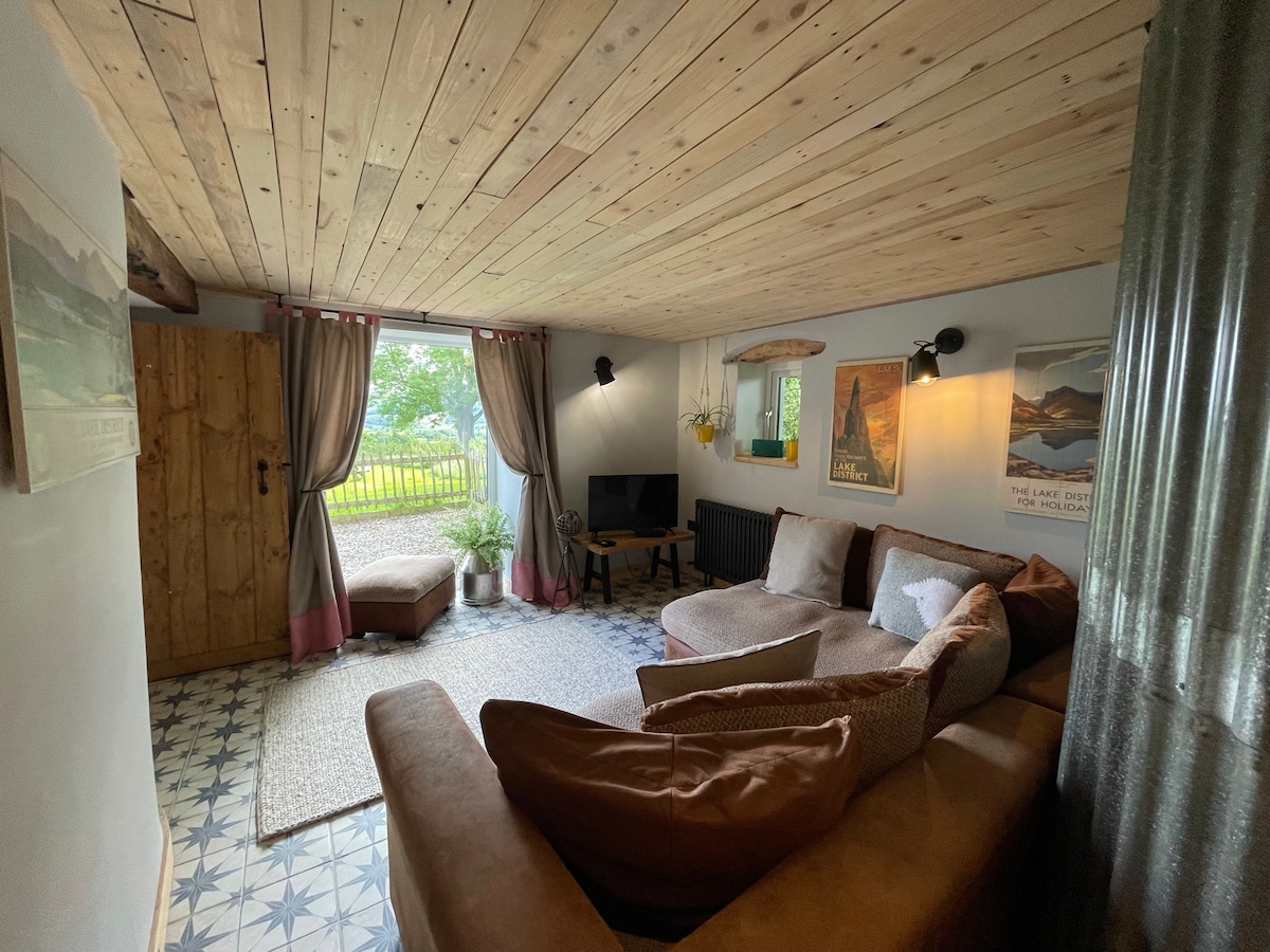 The End is a beautifully refurbished retreat in a quiet corner of the Lake District National Park. Built in c.1870 as part of How Farm, The End is a very comfortable self-contained space which sleeps TWO ADULTS and TWO CHILDREN. It has a large shared garden, unique kitchen and lounge, bathroom and ONE large bedroom (a King and two single sofa beds). The End is in a countryside location yet gives easy access to all the North West Lakes and the lesser known but very scenic West Coast.