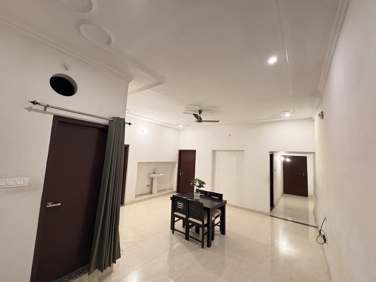 Step into a spacious, calm 3BHK apartment designed for families and small groups who value comfort, privacy, and a peaceful stay in Varanasi. Enjoy warm interiors, air-conditioned bedrooms, a cozy living and dining space, and a fully functional kitchen — everything you need to unwind after exploring the city. Whether you’re visiting with family, staying longer, traveling internationally, or coming as a group, you get the comfort of a private apartment to yourself. Unmarried couples welcome.