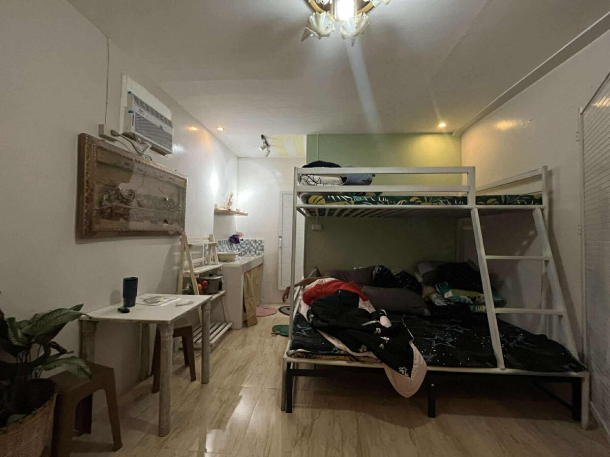 Renovated and removed the partition so now only 1 bedroom with 2 queen beds. 1 CR...It is located on the 3rd floor with separate entrance from the main house. The main house has a generator including room for guests, hot and cold water or shower, best for family or friends. Room can accommodate 4 persons ...Airconditioned.... no charge for children... we no longer serve breakfast ever since Covid 19 ... but we will provide you with stove, rice cooker and kettle