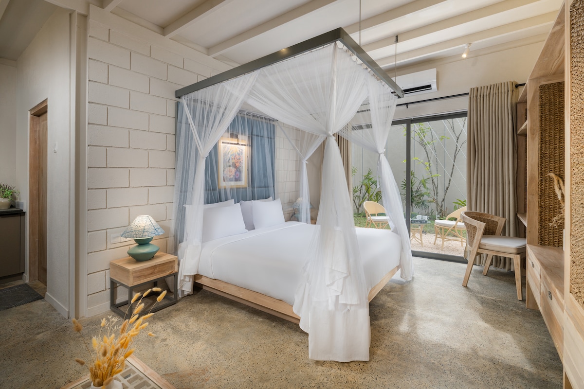 Sunyata Nilwella is a 3-bedroom, 3-bathroom boutique beach house set within its own private cove, overlooking a small island and a secluded beach just steps away. Hidden in the tree canopy and sharing the shade of a Bodhi tree from the monastery next door, the home feels calm and deeply private. Fully equipped and thoughtfully designed, Sunyata is a peaceful sanctuary minutes from the cafés, surf, and energy of Hiriketiya Beach.