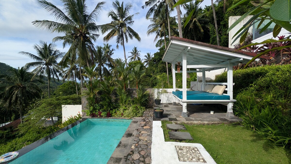 Situada en una colina entre cocoteros, Villa Vanna (anteriormente conocida como Villa Sukun) es una hermosa villa, con fabulosas vistas al atardecer sobre el estrecho de Lombok hasta el monte Agung en Bali. La villa y su impresionante piscina infinita se encuentran en un exuberante jardín tropical. Es el lugar perfecto para relajarte y relajarte en paz. Villa Vanna está a diez minutos en auto de Senggigi, con su gran cantidad de opciones gastronómicas.