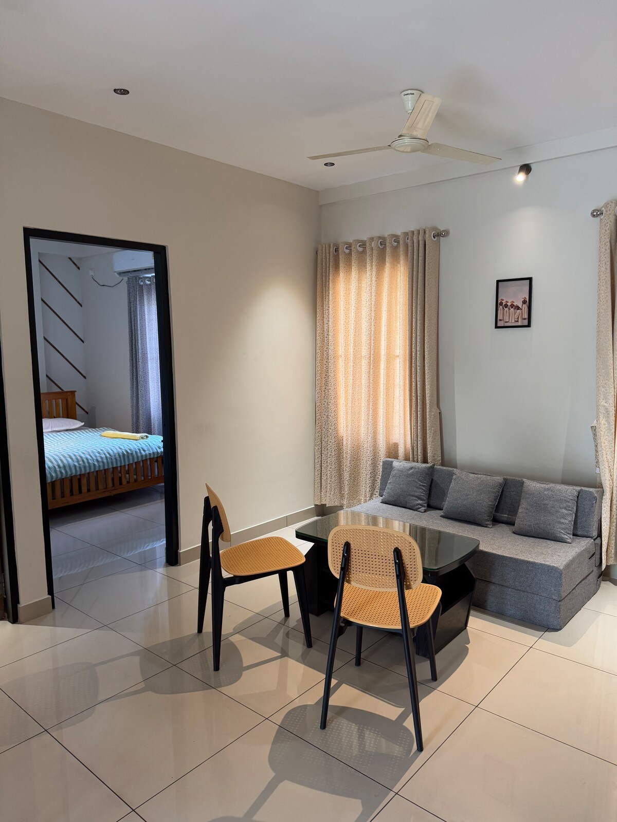 Experience refined comfort in this beautifully curated 2BHK apartment designed with elegant interiors and modern amenities. From plush bedrooms and a sophisticated living space to a fully equipped kitchen and high-speed WiFi, every detail is crafted for a premium stay. Situated in the heart of town, you’re steps away from top restaurants, shopping, and major hotspots. Whether you’re visiting for business or leisure, enjoy privacy, style, and convenience in one perfect address.
