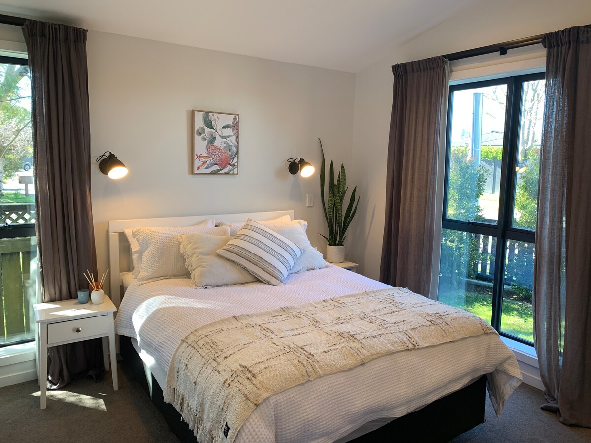 Carlton Cottage, built 2019, is a fantastic place where you can relax and unwind. Located next to our family home, it is surrounded by gardens, offers outlook and privacy. It features a bedroom with queen bed, luxurious semi-ensuite with tiled shower, living area with kitchen, smartTV, wi-fi, washing machine and a pool to cool off in summer! Centrally located in Otumoetai, walking distance to the harbours edge and cafes, 3.5kms to Tauranga's CBD and a 12 min drive to the Mount.