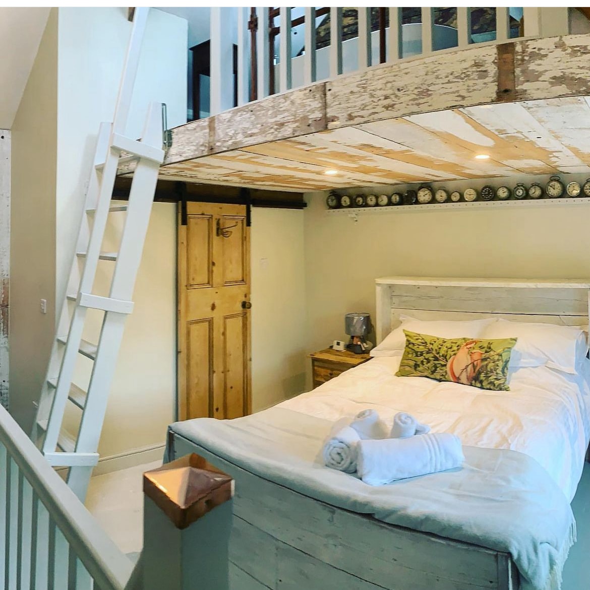 The Hay Loft is the first floor of a 1850’s Coach House and Stables. The whole interior measures approximately 16m x 5m. Fully self contained, the apartment is very spacious and can accommodate 2 people comfortably. King Size bed, linen included. Lounge area, 32” Freesat TV. Dining Table & chairs. Fitted Kitchen, dishwasher etc. Large walk in shower enclosure, separate bath, cosy long robes and complimentary toiletries. Decking area with lighting, overlooking open field onto woods.
