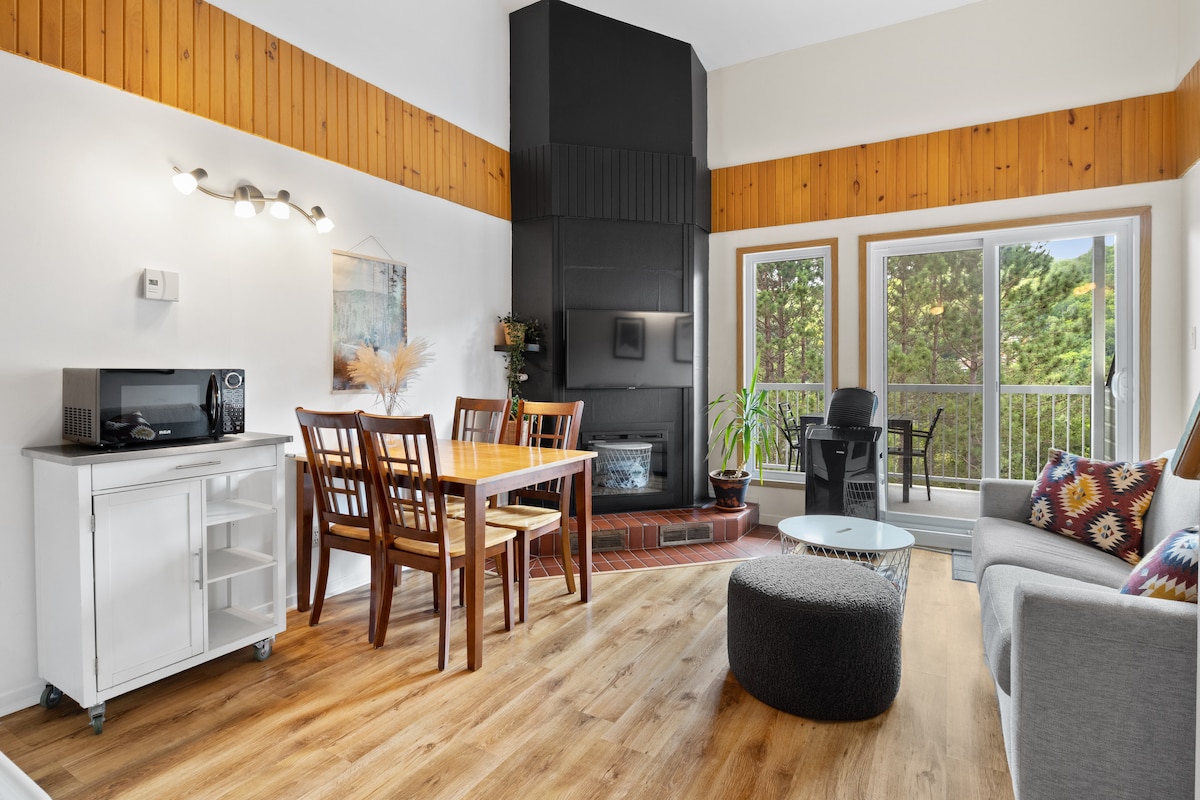 PISCINA y JACUZZI cerrados hasta junio de 2026 Bienvenido a Le Treehouse, un hermoso loft de estilo loft con entrepiso ubicado en el corazón del pueblo antiguo de Mont-Tremblant. - A 5 minutos en coche de la estación de esquí de Mont-Tremblant. - Parada de transporte gratuito cerca. - Aparcamiento gratuito/Wifi. - Netflix/video principal (se requiere suscripción propia) - Balcón privado con mesa de comedor. - Laudromat compartida en el sótano ($)