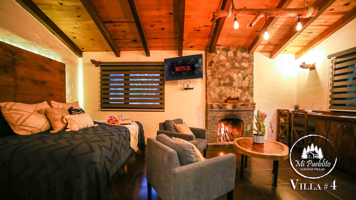 Relájate en este espacio tan tranquilo y elegante, Disfruta del encantador entorno de esta romántica Cabaña Prieta. Se encuentra ubicado a 5 km de la plaza principal, esta rodeada de enormes pinos, cuenta con acabados de lujo, Cocina equipada, Jacuzzi, Terraza con vista Panoramica, TV con sistema Dish. Todo lo necesario para que pases un agradable noche con tu pareja en la naturaleza.