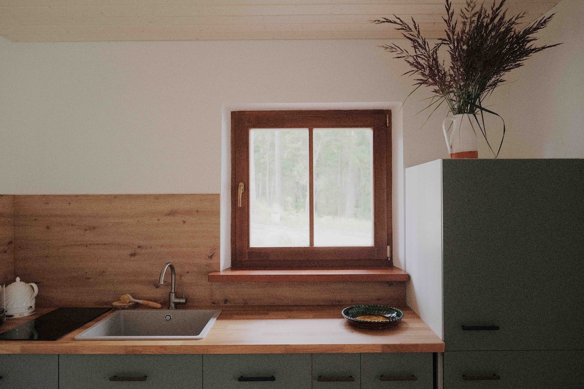 Escape to our stylish two-storey tiny cabin in Pitrõg village, Slītere National Park. Just 550 m from a pristine sandy beach for collecting seashells and amber. Enjoy modern design, cozy spaces, and pine-scented air. Perfect for couples, friends, or solo travelers. Relax with the sound of raindrops on the roof, share stories over coffee, and experience the simple joys of coastal living: sunny beach days, fresh smoked fish, and the calm beauty of nature.