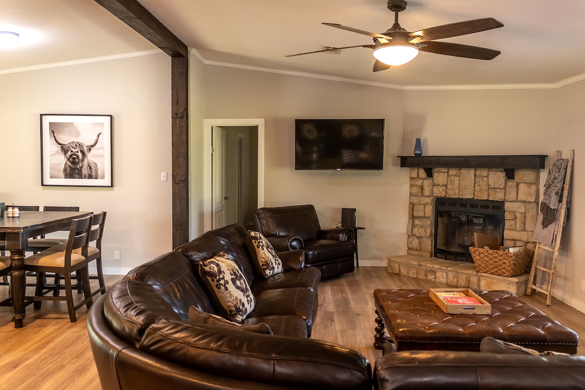 ¡Recientemente exhibido en la sección Escapadas de la edición del 24 de junio de Texas Highways Magazine! Relájate con toda la familia en la tranquila casa del corazón de Texas con un patio, un gran patio para perros y ningún lote vecino. Un gran parque se encuentra detrás de la casa que ofrece una acera perimetral para caminar/correr y una cancha de baloncesto. Además de las 4 camas, hay 2 sofás grandes en la sala de estar. ¡Todos los servicios están disponibles para que tu estancia esté lo más cerca posible de casa!