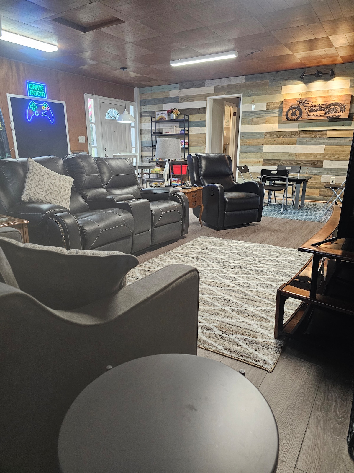 Spacious Serene 2-Bedroom Retreat Welcome to your home away from home! Nestled in a quiet and peaceful neighborhood, this spacious 2bed/2.5-bath home offers the perfect blend of comfort and convenience. Inside the Home Master Bedroom: memory foam king-size bed. A cozy queen-size bed with its own full bathroom close by for added privacy. A warm and inviting space with comfortable seating. Step outside and enjoy a half acre property, surrounded by back woods.
