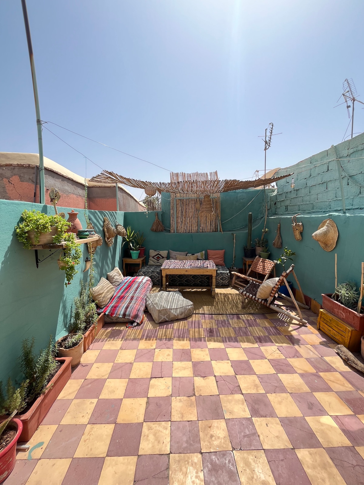 E' un piccolo riad nel cuore della Medina di Marrakech, è stato completamente ricostruito al posto di una rovina preesistente. Consiste di un ingresso, soggiorno con camino, angolo pranzo, cucina e bagno di servizio al piano terra, tutti gli ambienti sono disposti intorno al patio. Al primo piano ci sono una camera matrimoniale, un bagno grande, un disimpegno con possibilità di un terzo letto. Al terzo livello c'è la terrazza attrezzata con sedute e tavolo per colazione.