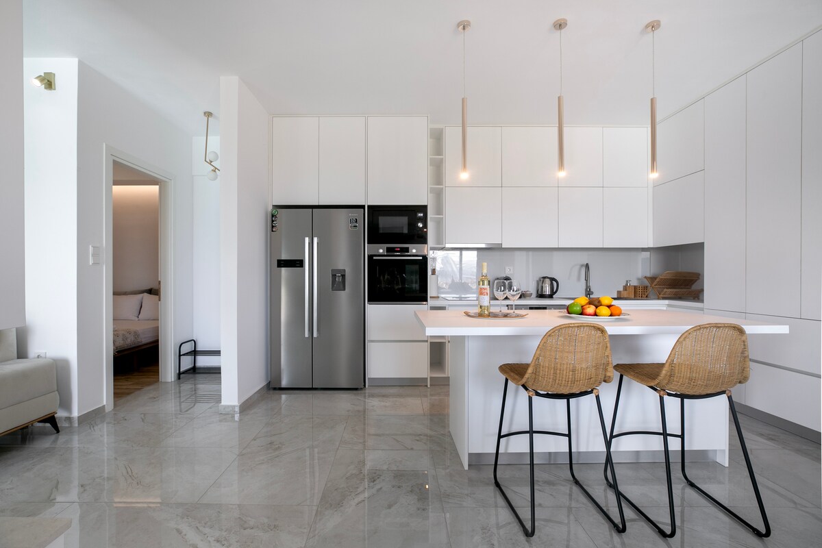 Este elegante y soleado apartamento de 100 m2 está situado en el casco antiguo de Kalampaka. ¡Se encuentra en un hermoso paisaje rodeado de árboles con una impresionante vista a la terraza de las famosas Rocas de Meteora!Al alojarte aquí, tienes un gran acceso a la zona comercial de Kalampaka (restaurantes, panaderías, cafeterías, bancos, oficina de correos, etc.), ya que está a solo 5 minutos del centro de la ciudad. ¡Se encuentra en un barrio tranquilo y cómodo para llegar a los mejores lugares de Kalampaka e incluso explorar Meteora a pie! La ubicación clave, la limpieza profesional y la decoración elegante lo hacen adecuado para todos los huéspedes.