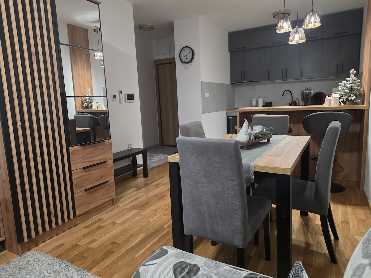 Apartamento de 1 dormitorio de 35 metros cuadrados (375 pies cuadrados) en la planta baja superior con balcón con vistas al jardín, viene con estacionamiento PRIVADO GRATUITO en el ultramoderno condominio de 3 pisos sin tocar completado a finales de diciembre de 2017. Serás uno de los primeros huéspedes en alojarse en este apartamento en el corazón de la ciudad de Novi Sad, a 800 metros o a menos de 10 minutos a pie de la plaza central de la ciudad. A poca distancia a pie de la estación de tren de Novi Sad y la terminal de autobuses (600 metros).
