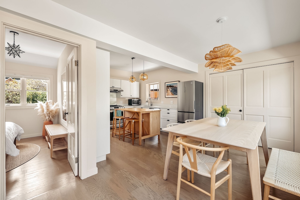 Come recharge in our 1887 Victorian cottage—as featured in the New York Times real estate section in November ‘23–with unobstructed views of the stunning Mendocino coastline. Descend from our beautiful home along a gently sloping, short trail leading directly onto the Van Damme State Park beach. Beach Trail Cottage offers a deep front porch, decorative shingles, and high-pitched roof angles that seamlessly blends the old with the new for an unpretentious yet elegant, inviting space.
