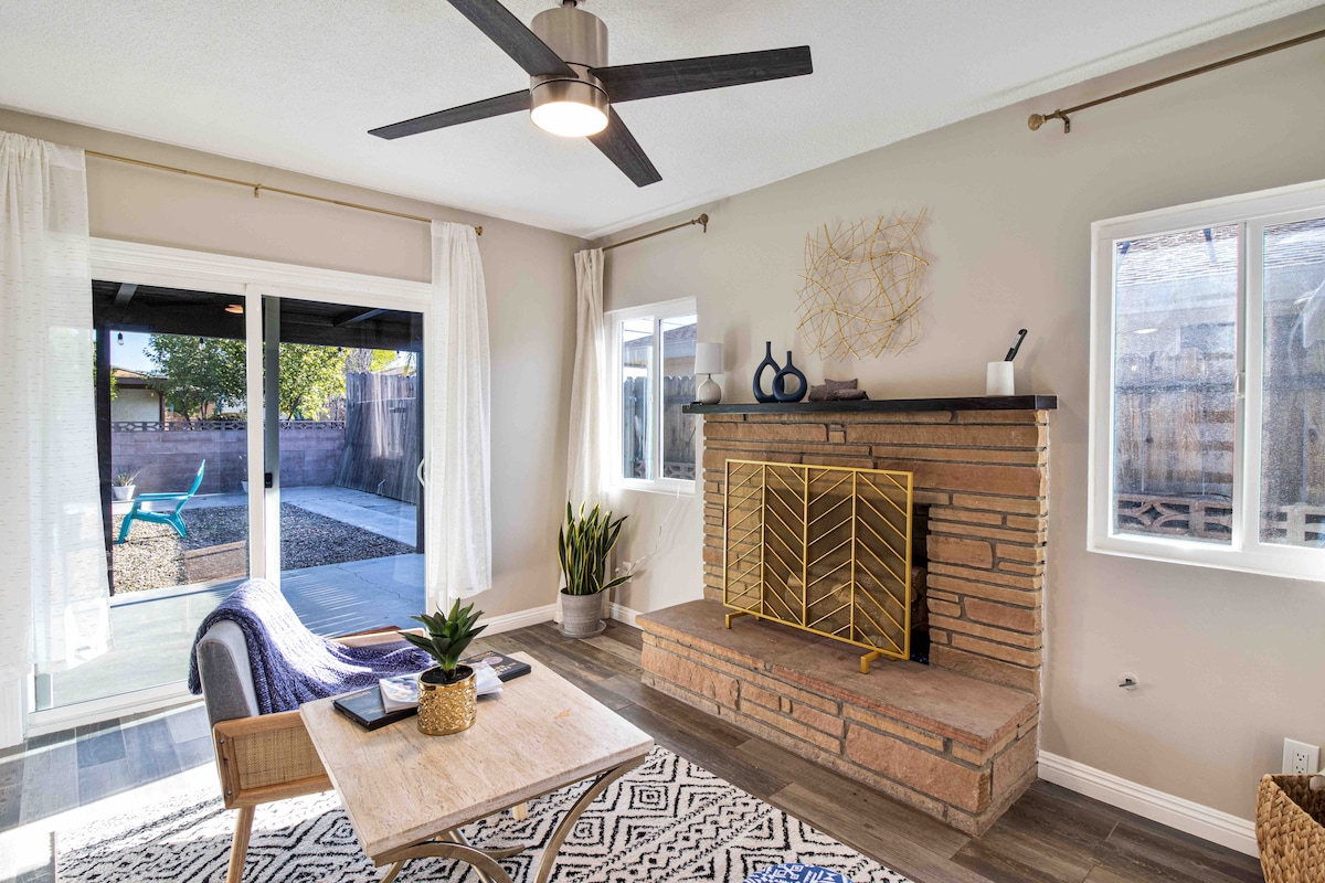 Alojamiento entero y elegante de mediados de siglo: ¡perfecto para una escapada acogedora! Estacionamiento en el garaje...2 DORMITORIOS con chimenea y aire acondicionado. Atracciones cercanas: Aeropuerto Internacional de Ontario: 55 minutos SOBOBA Casino-10 min Morongo Casino-30 min Cabazón Outlets-31 min Lake Perris&Diamond Valley Marina-36 min Lago Elsinore-40 min Idyllwild Park-36 min Temecula Wine Country a 36 minutos Tranvía aéreo a 50 minutos Por la zona: Golf Rancho Bravo, Little Lake y 123 Farm;CA Route 62, Cabazon Dinosaurs, Hemet Theatre & Museum, Ramona Bowl Amphitheater.