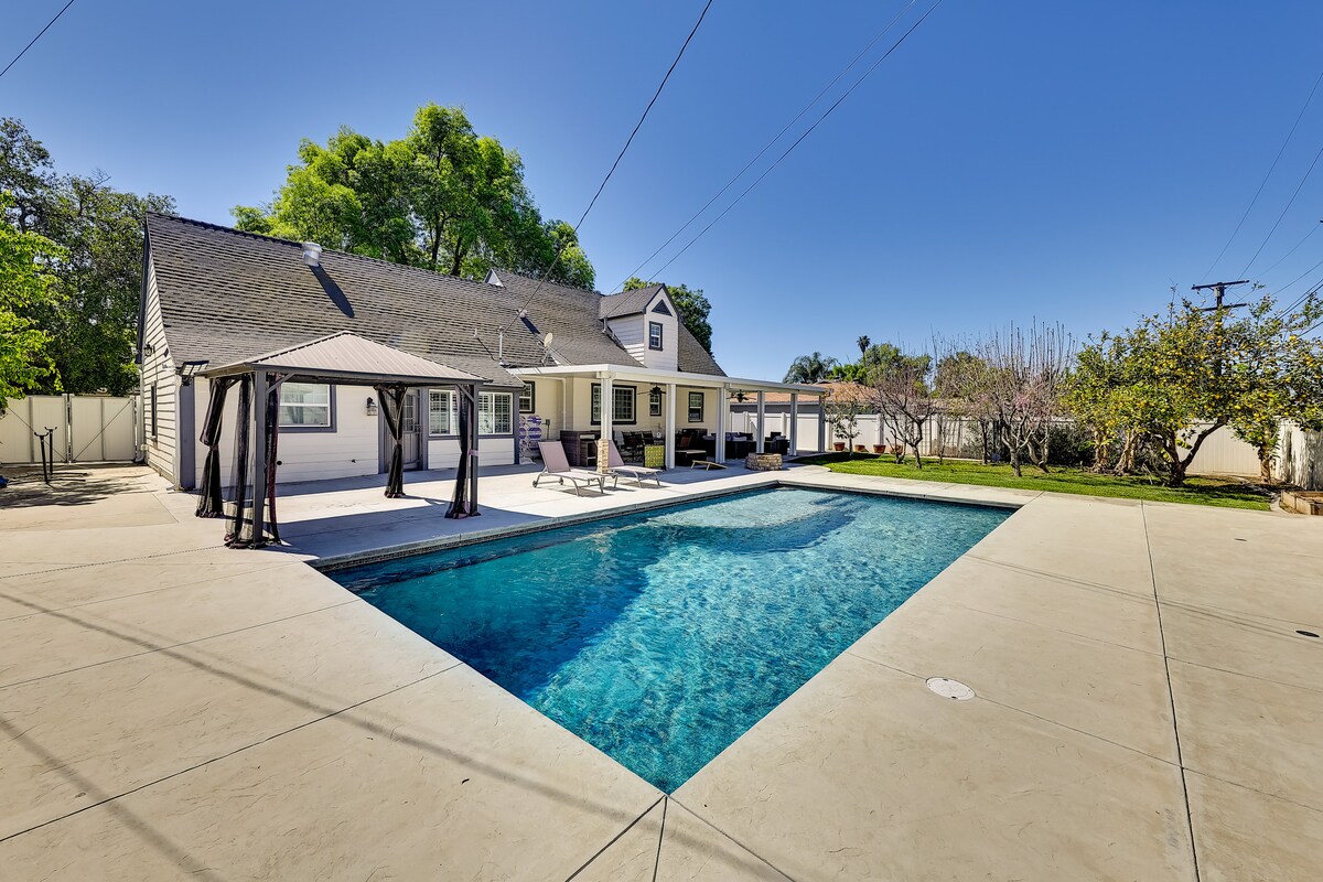 Gorgeous 3 bed/2 bath single floor home with PRIVATE Heated POOL that feels like a 5 Star resort with FREE EV charging for your car. Beautiful backyard, BBQ grill and 12 seater lounge, pool & hot tub with water slide. Fireplace, 85” OLED TV, work space, High speed Wi-Fi , Gym. Fully equipped kitchen, 6-burner gas range stove, rice cooker, coffeemaker etc. Laundry room with washer/dryer, iron/board, air conditioning, heating, linens/towels, Pack & play. Digital door lock, Driveway for 4 vehicles.