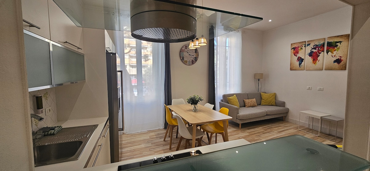 Venga a disfrutar de una estancia agradable en este elegante y espacioso apartamento de 3 habitaciones con aire acondicionado en el corazón de Menton, a 200 metros de las playas y cerca de todos los servicios. Decorado con buen gusto con sus hermosas alturas de techo, con capacidad para 4 personas. (Dos parejas o 1 pareja + dos hijos.)Situado en la 1ª planta sin ascensor. Posibilidad de reservar en línea un estacionamiento en el inter Aparcamiento subterráneo "Saint Roch" justo enfrente del alojamiento. A 10 minutos de la estación de tren SNCF/ parada de autobús