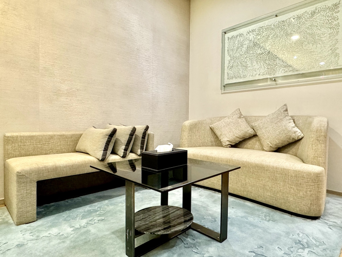 Abre las cortinas del dormitorio por la mañana para revelar una impresionante vista de la ciudad, una vista que también podrás disfrutar desde un práctico escritorio. Los relajantes tonos topo y gris mantienen una sensación sofisticada. Los detalles modernos del baño y la cocina lo convierten en un punto de partida ideal para explorar. Mi apartamento de servicio de un dormitorio de aproximadamente 900 pies cuadrados está totalmente amueblado y equipado con aire acondicionado, con sala de estar, comedor, cocina y dormitorio integrados. Sala de estar: cómodo sofá de 3 plazas, sillón reclinable y TV de pantalla plana para que los huéspedes disfruten de un lugar cómodo donde pasar su tiempo libre. Cocina: ¿Te apetece preparar tu propia comida? No te preocupes, esta cocina moderna y bien equipada tiene todo lo que quieres para preparar tu comida, ya sea para ti o para tu pareja. No te sorprendas de que incluso tenga una lavadora que viene con secadora incorporada. Comedor: una mesa de comedor sencilla y acogedora adyacente a la cocina para servir cómodamente. No dudes en preparar tu propia comida y disfrutar comiendo aquí, así como para compartir una risa y fortalecer las relaciones. Dormitorio: el lugar donde te escondes al final del día para descansar, relajarte antes de dormir. Esta espaciosa y cómoda habitación cuenta con cama tamaño king, vestidor y escritorio, TV de pantalla plana y también acceso privado a un magnífico baño que te ofrecerá un entorno de descanso inolvidable. Por último, pero no menos importante, se proporciona acceso gratuito a internet por wifi para que los huéspedes lo utilicen en mi apartamento y puedan mantenerse en contacto con amigos y familiares o encargarse de sus negocios en cualquier momento. Las instalaciones comunes del Sky Gym, ubicadas en el piso 39, la piscina infinita, las salas de juegos y el parque infantil en el piso 5 que funcionan todos los días de 7:00 a 22:00 h. Pregunta todo lo que quieras. El apartamento se encuentra en el Fraser Residence Hotel, en el centro de Kuala Lumpur. Está a 800 metros de las Torres Petronas y del centro comercial Suria KLCC. En cuanto a la comodidad, la tienda de comestibles está a solo un minuto, el transporte público no solo se puede llegar en unos minutos a pie como la estación de monorraíl Bukit Nanas (5 minutos) y la estación de tren ligero Dang Wangi (7 minutos), sino que los huéspedes también pueden llegar a pie al cercano Centro de Turismo de Malasia (7 minutos), Torres Petronas (18 minutos), Hard Rock Café (8 minutos), Torre de Kuala Lumpur (29 minutos) y muchas otras atracciones. También hay un servicio de autobús público (GOKL City Bus) que ofrece a los pasajeros viajes gratuitos para los viajeros dentro del distrito central de negocios de Kuala Lumpur. Te invitamos a viajar a algunos de los lugares populares como Pavillion, Bukit Bintang, Petronas Twin Tower, Pasar Seni y muchos más... Ofrecemos limpieza gratuita (una vez a la semana) a aquellos que se alojen durante 7 noches o más, que incluye cambio de sábanas, toallas y limpieza básica. (Bajo petición, con un día de antelación) El apartamento se encuentra en 188 Suites en el centro de Kuala Lumpur. Está a 800 metros de las Torres Petronas y del centro comercial Suria KLCC.