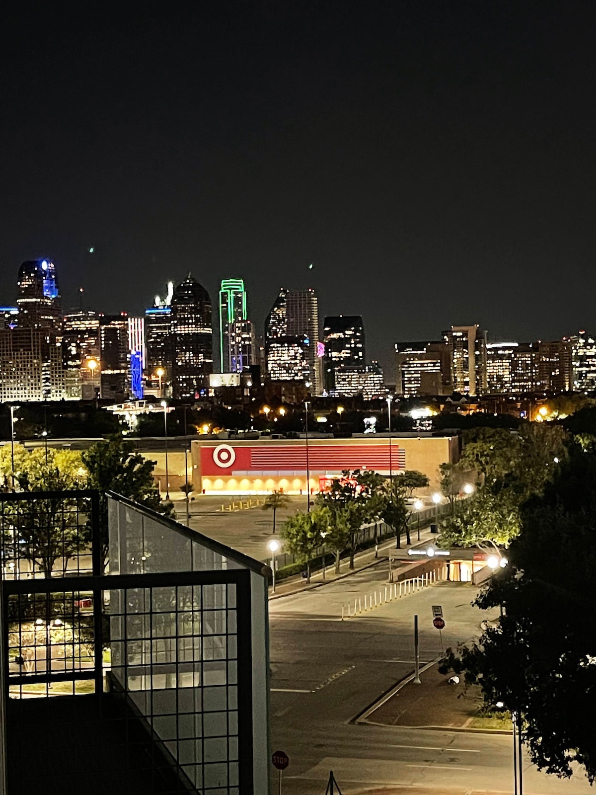 Vista de la ciudad de Dallas en el centro de la ciudad con balcón