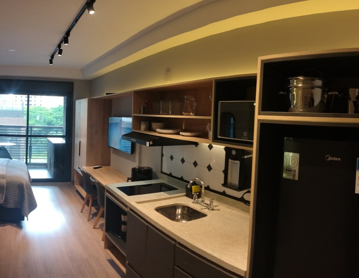 Descubrí un refugio elegante y completo en Brooklin, uno de los barrios más deseados de São Paulo. A solo 2 minutos de la estación de Brooklin (línea Lila), estarás rodeado de restaurantes, cafés y todo el dinamismo de la región de Berrini. Disfrutá de la increíble estructura del edificio con piscina, gimnasio, espacio de coworking y mucho más en la región más céntrica de Sao Paulo. Un estudio moderno, pensado en los más mínimos detalles para ofrecer una estadía práctica, cómoda e inolvidable.