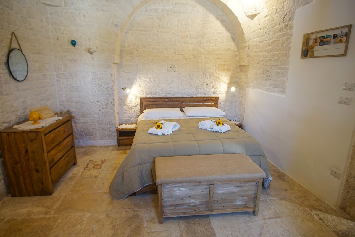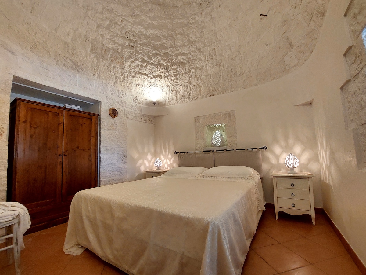 La casa es un trullo del siglo XIX, completamente renovado, equipado con calefacción y aire acondicionado, TV inteligente y Wi-Fi. El dormitorio está equipado con una cama doble con mesitas de noche, lámparas de lectura y un armario. En la habitación, equipada con heladera, microondas, tostadora y cafetera espresso, hay un sofá cama; puedes cocinar y cenar en una mesa para 4 personas. Desde la habitación se puede acceder al baño equipado con lavadora, agua caliente, todos los accesorios de baño, lavabo, bidé y ducha con cabina.