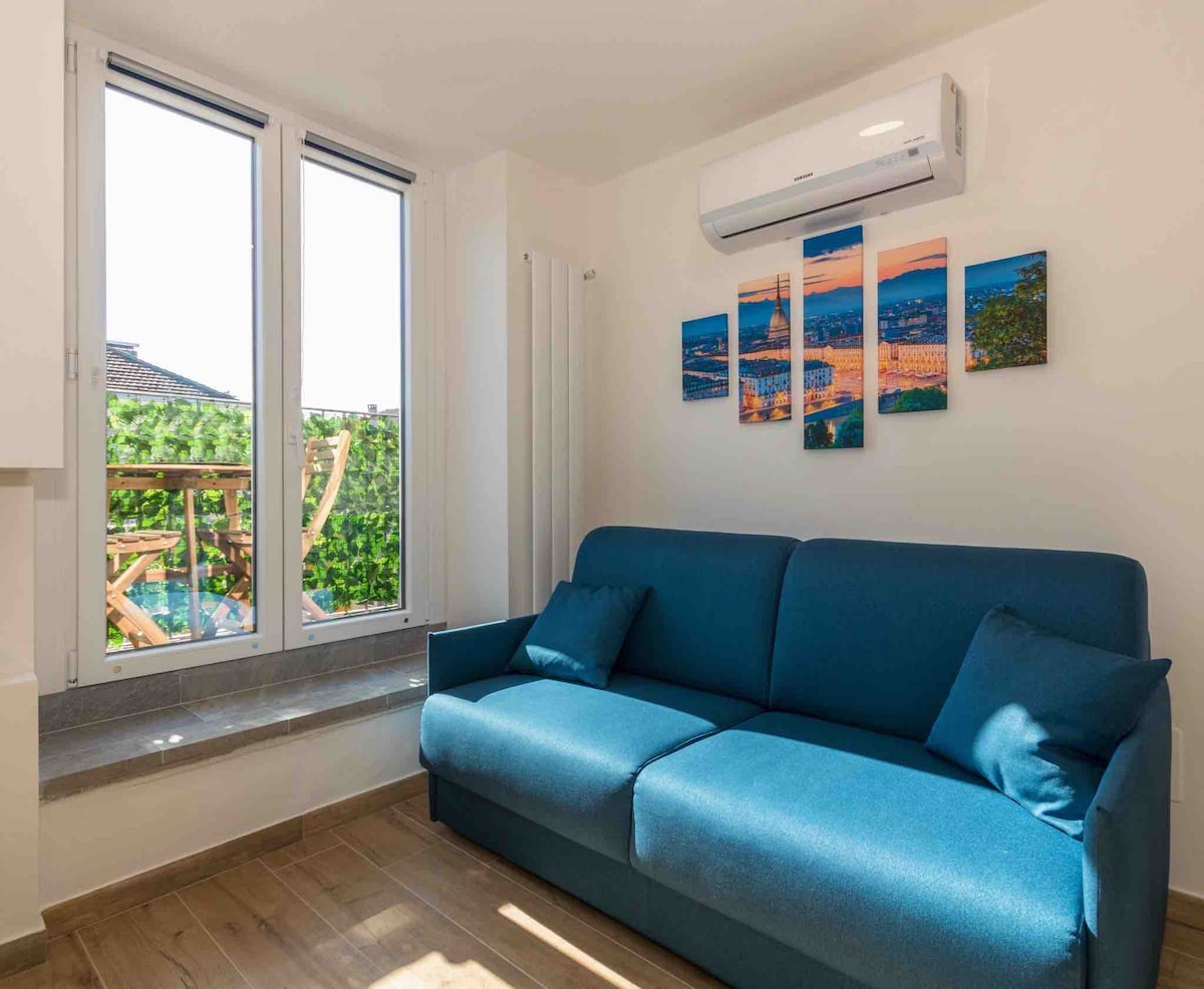 Delizioso monolocale nel quartiere San Salvario , vicino alla metro, poco distante dal Centro e difronte allo splendido Parco del Valentino, un oasi verde naturale nel centro di Torino dove è possibile fare trekking, jogging o cycling lungo le splendide rive del fiume Po. Nell'ampia e accogliente stanza con letto matrimoniale è disponibile una zona con divano letto doppio, frigorifero, fuochi, forno a microonde, aria condizionata,lavatrice, e tutti gli accessori per poter cucinare.