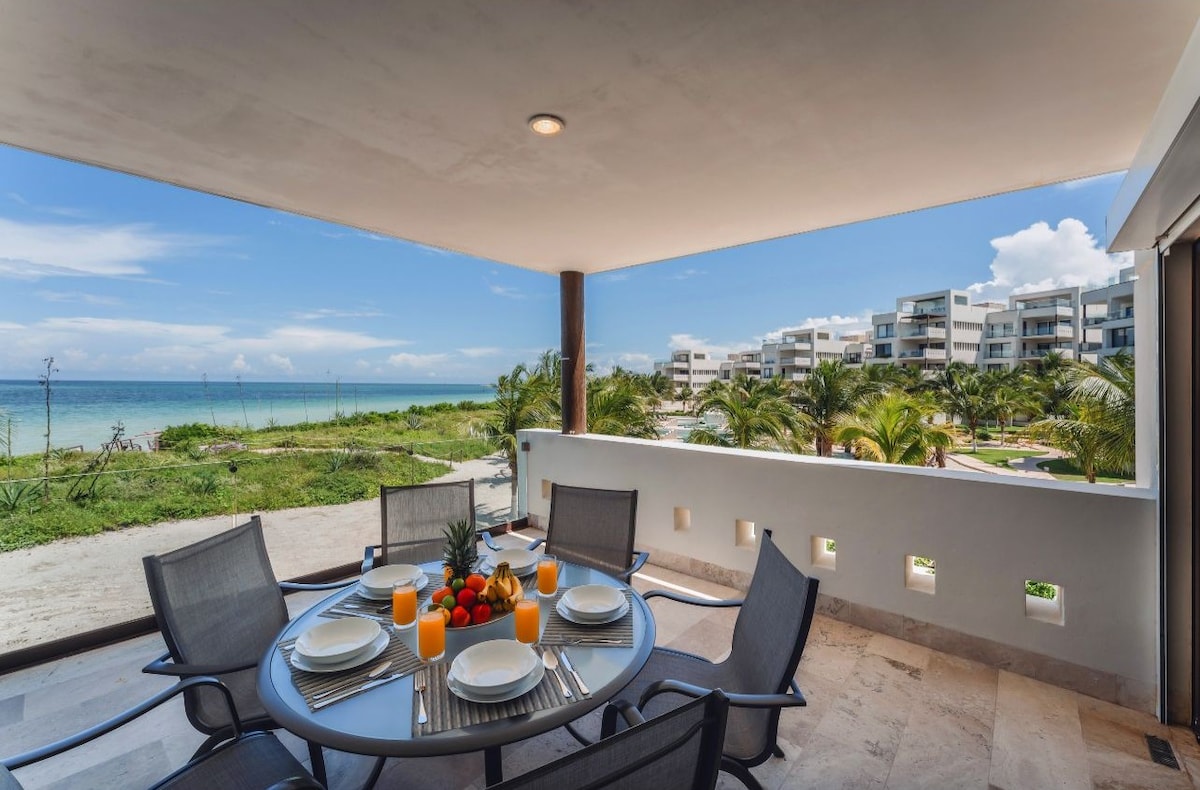 Bienvenido a Miranda, Chic Beach condo a 1 minuto de la playa. Localizado en un desarrollo específicamente estructurado para lograr un balance entre lujo y armonía hogareña. Miranda es la excusa perfecta para no salir de casa, ya que aquí mismo podrás disfrutar de las areas comunes ubicadas estratégicamente en la azotea para que puedas refrescare en la alberca infinita mientras trabajas en tu bronceado, o relajarte en el bar sin dejar de ver la belleza del inigualable mar Caribe.