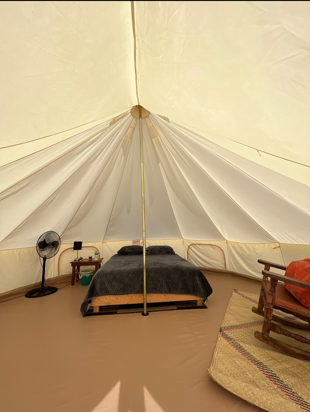 Tipi Iztli, inspirado en la obsidiana, piedra sagrada de la región. Un espacio único para 2 a 4 personas, ideal para escapadas románticas o de aventura. Con colchones de alta calidad, acabados acogedores y baño privado a 3 metros. Cocina equipada, frigobar y área segura para tu tranquilidad. Pet friendly con restricciones: tu mascota es bienvenida pero no puede permanecer dentro del tipi. Un refugio natural para desconectarte y vivir una experiencia auténtica.