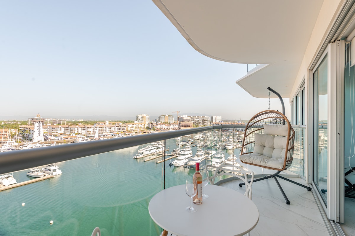 Disfruta del lujo y la comodidad en el corazón de Marina Vallarta. Ubicado en el piso 7, este exclusivo condominio ofrece una experiencia funcional y moderna con una de las mejores vistas de la región. Desde tu balcón privado, podrás contemplar el movimiento de los yates, la iluminación nocturna de la marina, el despegue de aviones y la majestuosa Sierra Madre. • Espacios Integrados: Una sala luminosa con Smart TV de 65” que conecta con una habitación principal equipada con cama King Size