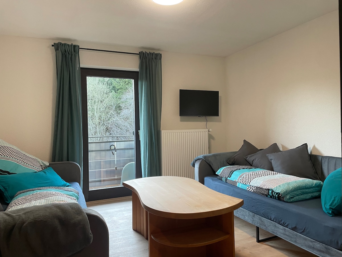 El apartamento está recién reformado, amueblado y situado en el corazón de la hermosa Absberg. Cuenta con tres dormitorios, cada uno con una cama doble de 1,80 m y un sofá cama. Dos dormitorios tienen acceso directo al balcón, así como al gran salón. La cocina cuenta con una moderna cocina empotrada con lavavajillas y ofrece suficiente espacio para sentarse juntos en el comedor contiguo. El baño tiene ducha y bañera, así como una lavadora.
