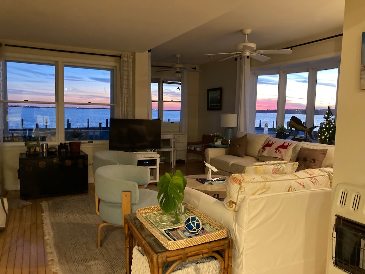 Spectacular back bay waterfront location with unique views of sunrise & sunsets from front deck. Cozy,romantic & quiet home located in a quaint, isolated fishing hamlet minutes from Stone Harbor,Avalon ,Cape May & Wildwood beaches & boards .Launch kayaks from the private steps & explore the salt marsh ecosystem!Excellent bird watching & crabbing. Bicyclists can take the bike trail from Cape May Zoo to Cape May!! Watch the Wildwood fireworks from the front yard fire pit(fri/nites)!