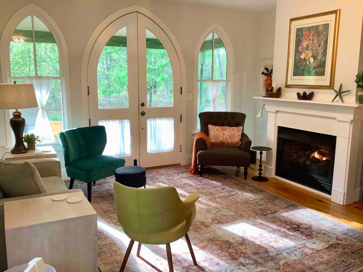 Ubicada entre los árboles en 2 acres boscosos y tranquilos, esta casa de campo deleita con arquitectura gótica, habitaciones llenas de sol y un baño para cada dormitorio. Relájate en el jacuzzi bajo las estrellas, bebe vinos locales y come ostras. Disfruta de un crucero en barco al atardecer o aprende a pescar ostras y cangrejos con un pescador local. Puestos de granja, mercados y comida local del mar a la mesa. Vive la vida en una histórica ciudad acuática con mucha personalidad. Cerca de Tides Inn, Kilmarnock, White Stone, Compass Entertainment.