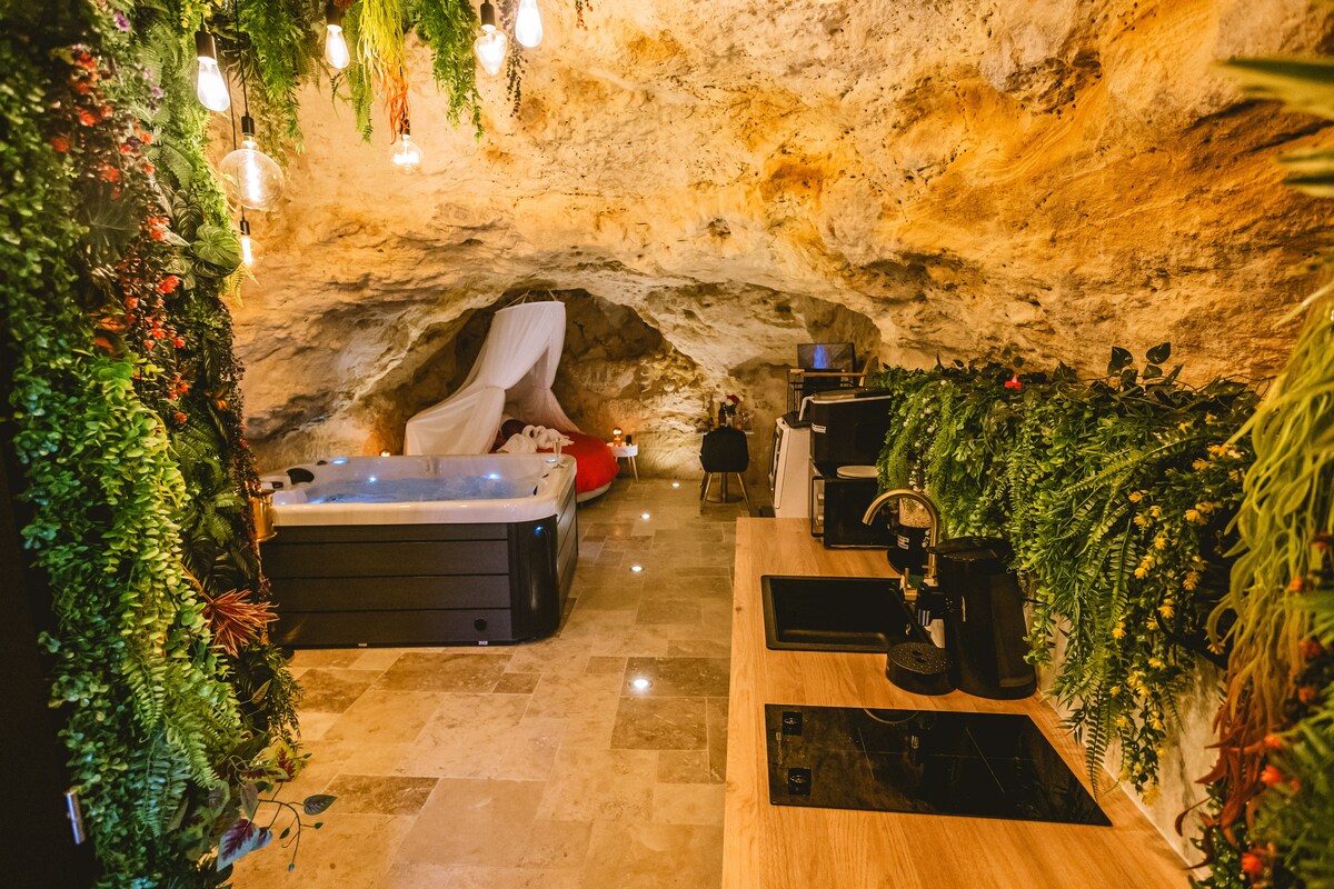 Descubra un alojamiento único y atípico ubicado en el corazón de una cueva en Mussidan, que ofrece un ambiente íntimo y mágico. Diseñado como una verdadera sala de amor, este espacio atípico le sumerge en un universo encantador con sus paredes y su techo cubiertos de flores, creando un ambiente cálido y romántico. Ideal para una escapada en pareja, este lugar inusual mezcla naturaleza y comodidad para una experiencia atemporal.
